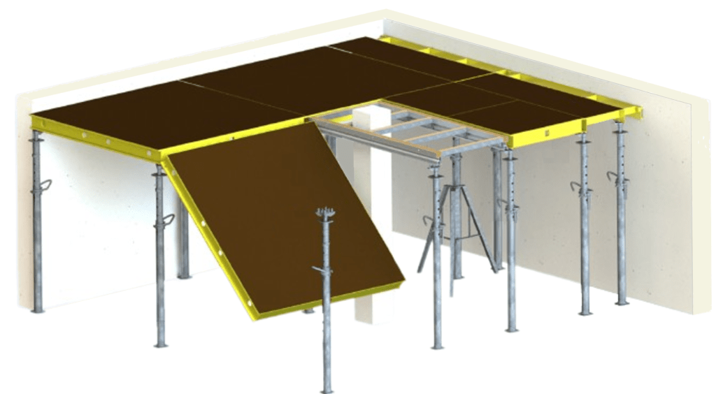 Topec is an aluminium modular formwork system, designed for the construction of slab formwork without the need for beams, only two components are needed – a panel and props.